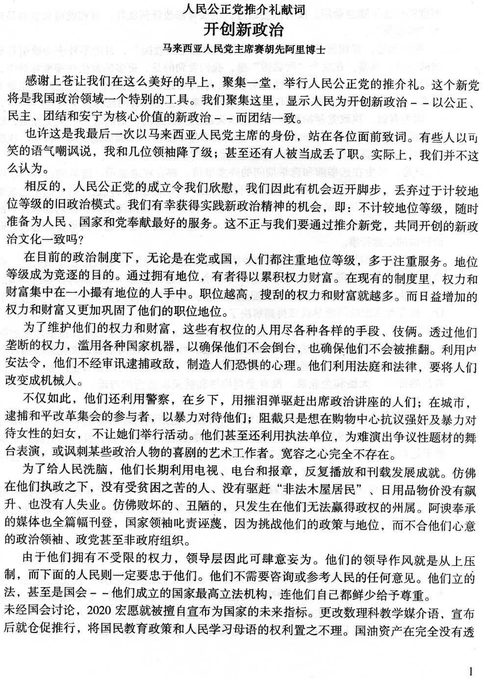 《 第14次百人购物活動》 《 公正党第8届全国代表大会》 《火辣辣的, 新專欄﹣“春風送暖”》 雪州政府"利民计划"又有令人《惊喜的消息 》