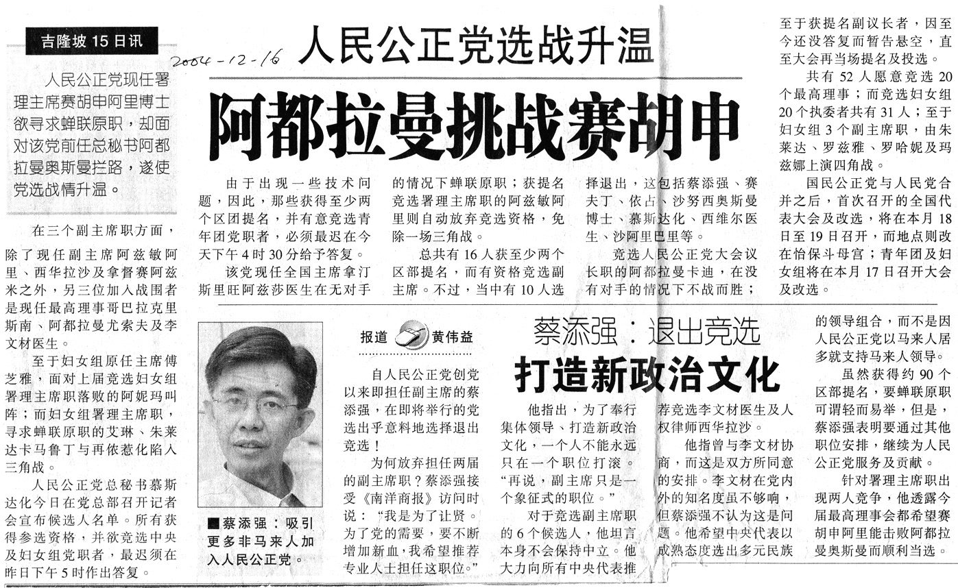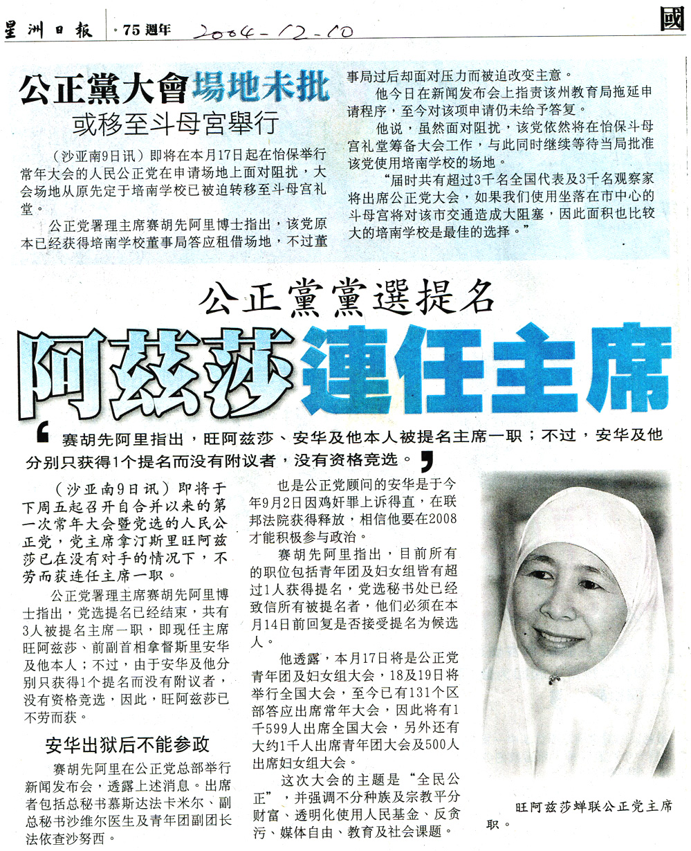 2004年12月17日怡保妇女组暨青年团代表大会人民公正党署理主席赛.胡先阿里讲词