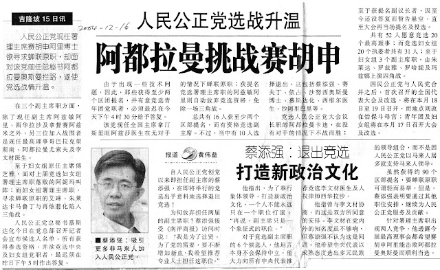 作为一个民主的政党,我们无可避免要在党的各级领导层进行竞选。唯有通过运用民主程序来选出党的领导层,才能展现党内的民主文化。我们深感自豪,我党虽然是个年轻的党,我们并没有因此放弃或取消这个民主程序。