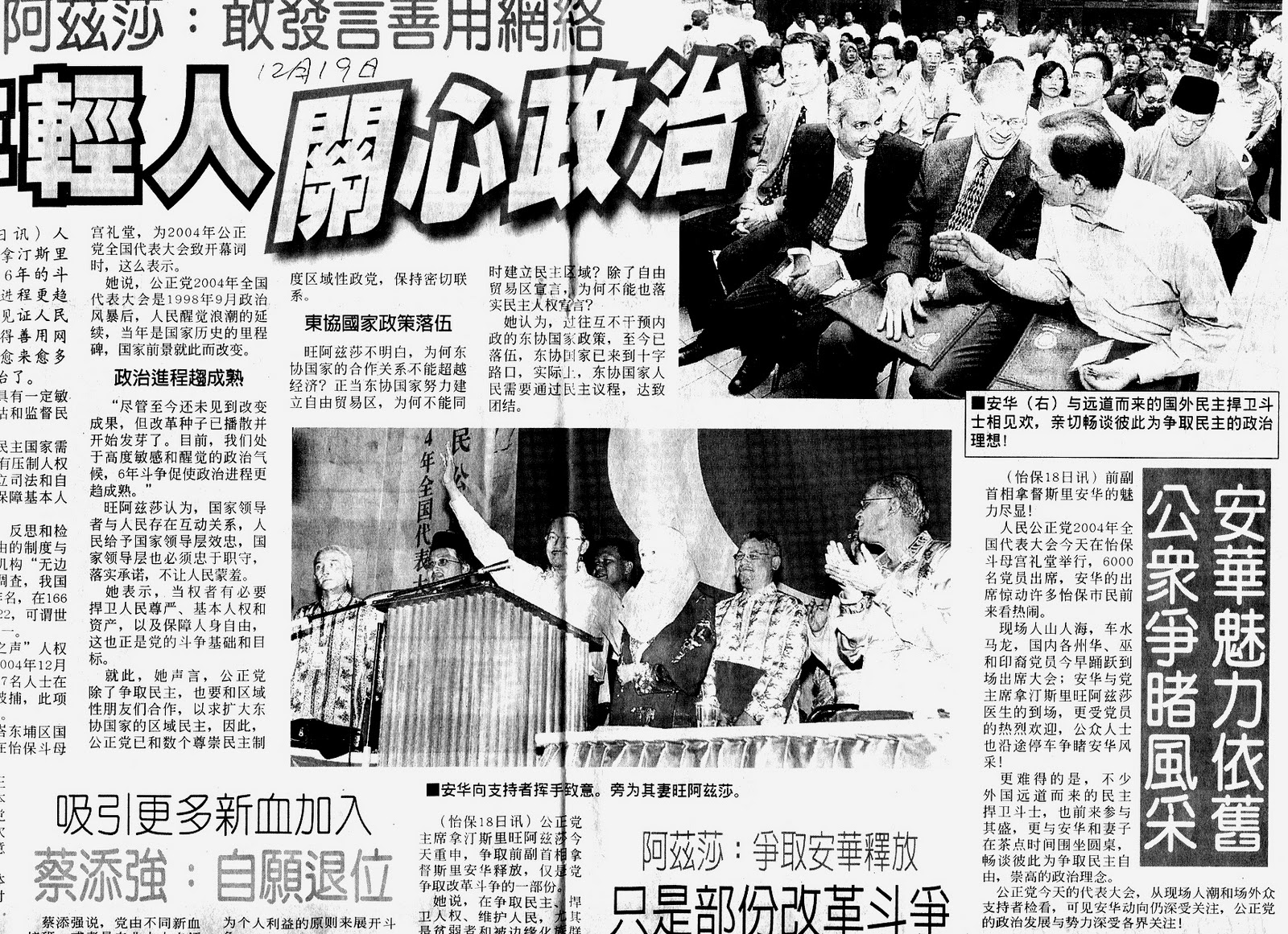 这将让他们可以成为党的坚实的基础,以及作为我们迈向改革的强大推动力。我们全都知道改革这个名词,已经被我国的代表人物兼我们的顾问-安华同志,所普及化了。在安华被革职、被侮辱、―被逮捕、被殴打,安华以及数以万计的人民喊出改革的口号。