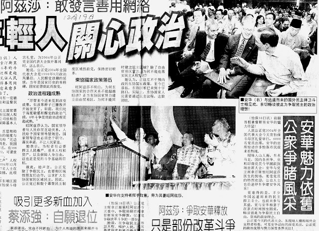 安华在病中被单独囚禁,经过漫长的六年之后,他重获自由。他的斗志并未消退, 反而是更加旺盛,他不断重申继续改革的斗争。他不只是喊出口号,而是开始解释改革的意义。明晚我们将有幸聆听他的演讲,他将论述改革运动作为一个"改变的议程"。