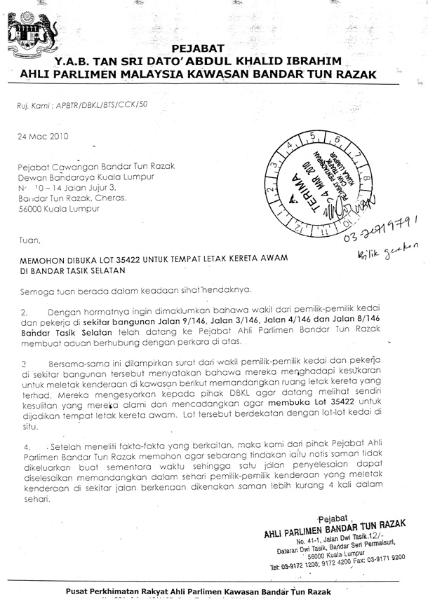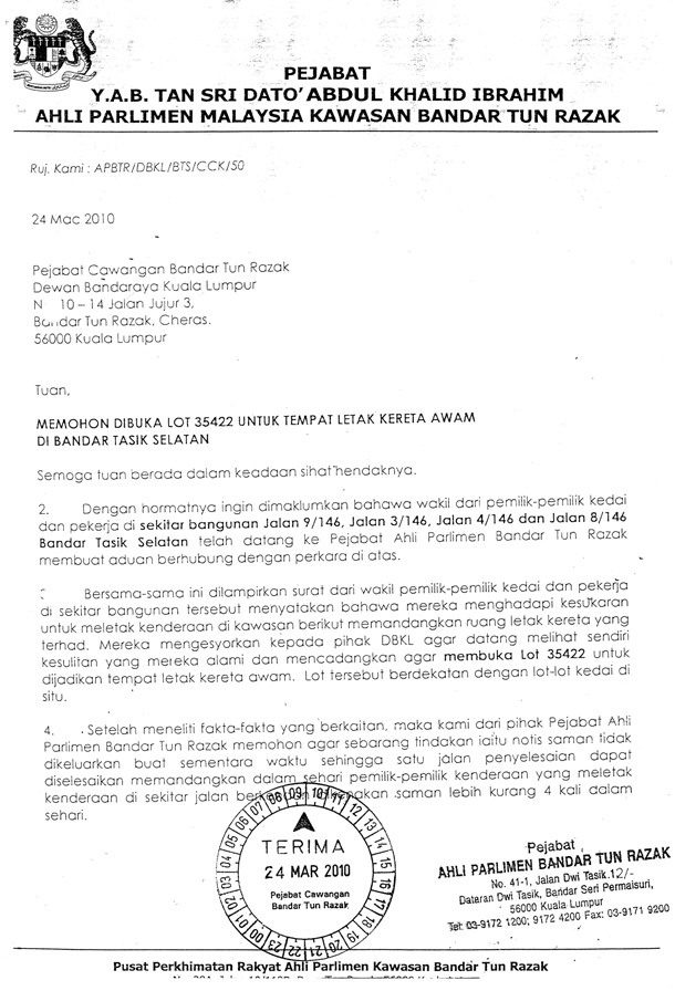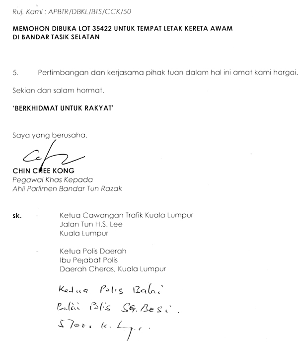 结果:在当商家的配合下,本服务中心向市政府各部陈情和争取之后。结果在商业区后面一块尚未发展的空地增设一个新的停车场。