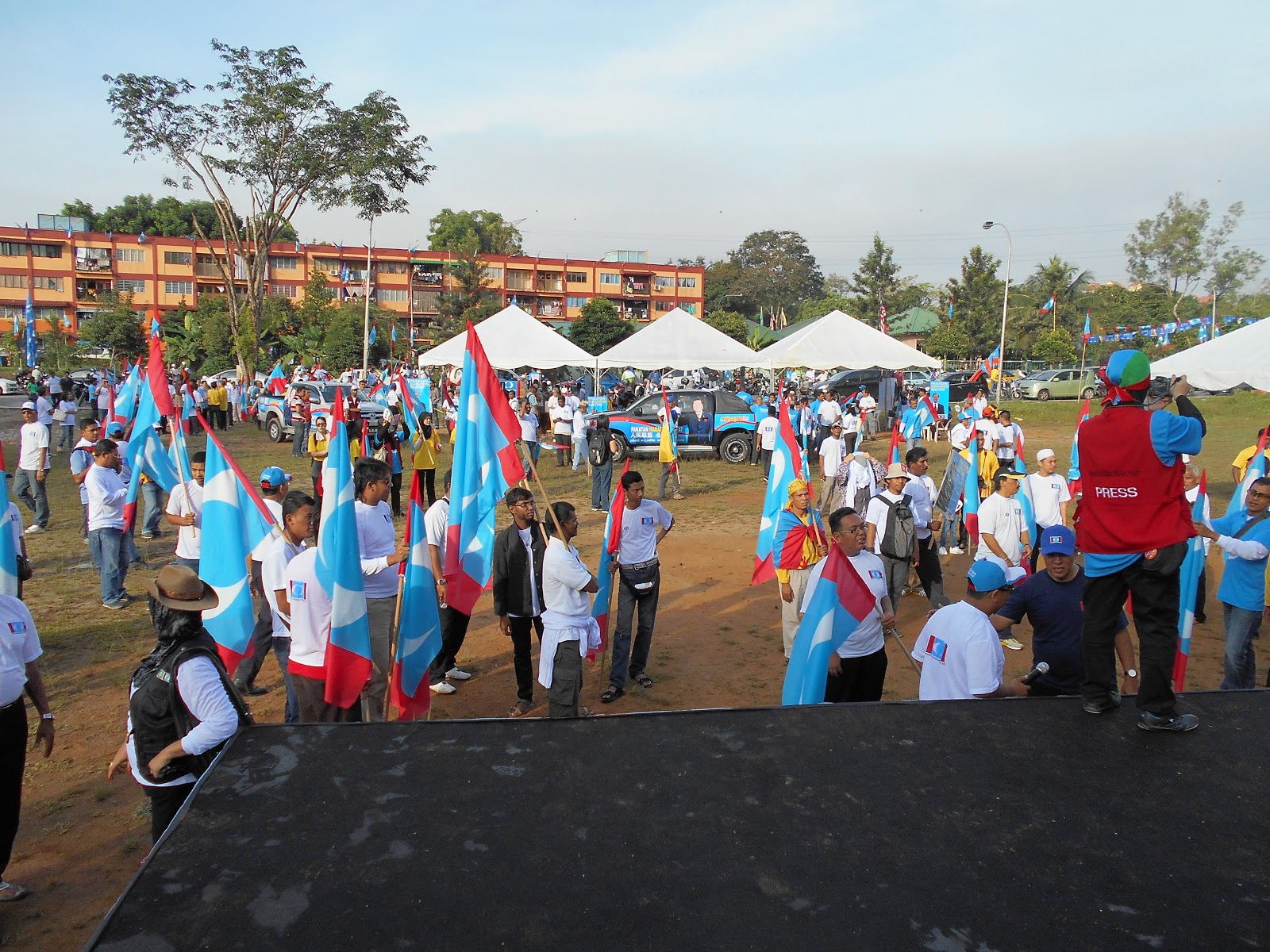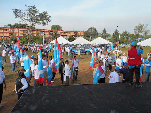 2013年4月20日早上八时起公正党党员及支持者,陆续来到了Sri Labuhan 组屋区的大草场。为得是为敦拉萨镇国会选区国会议员侯选人提名打气。