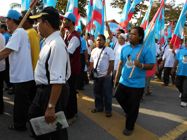 集会的群众士气高昂。在享用了区会准备的简单早点后。众人例队向提名中心进发。一路高喊“烈火莫熄”及向布城迈进口号。
