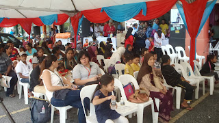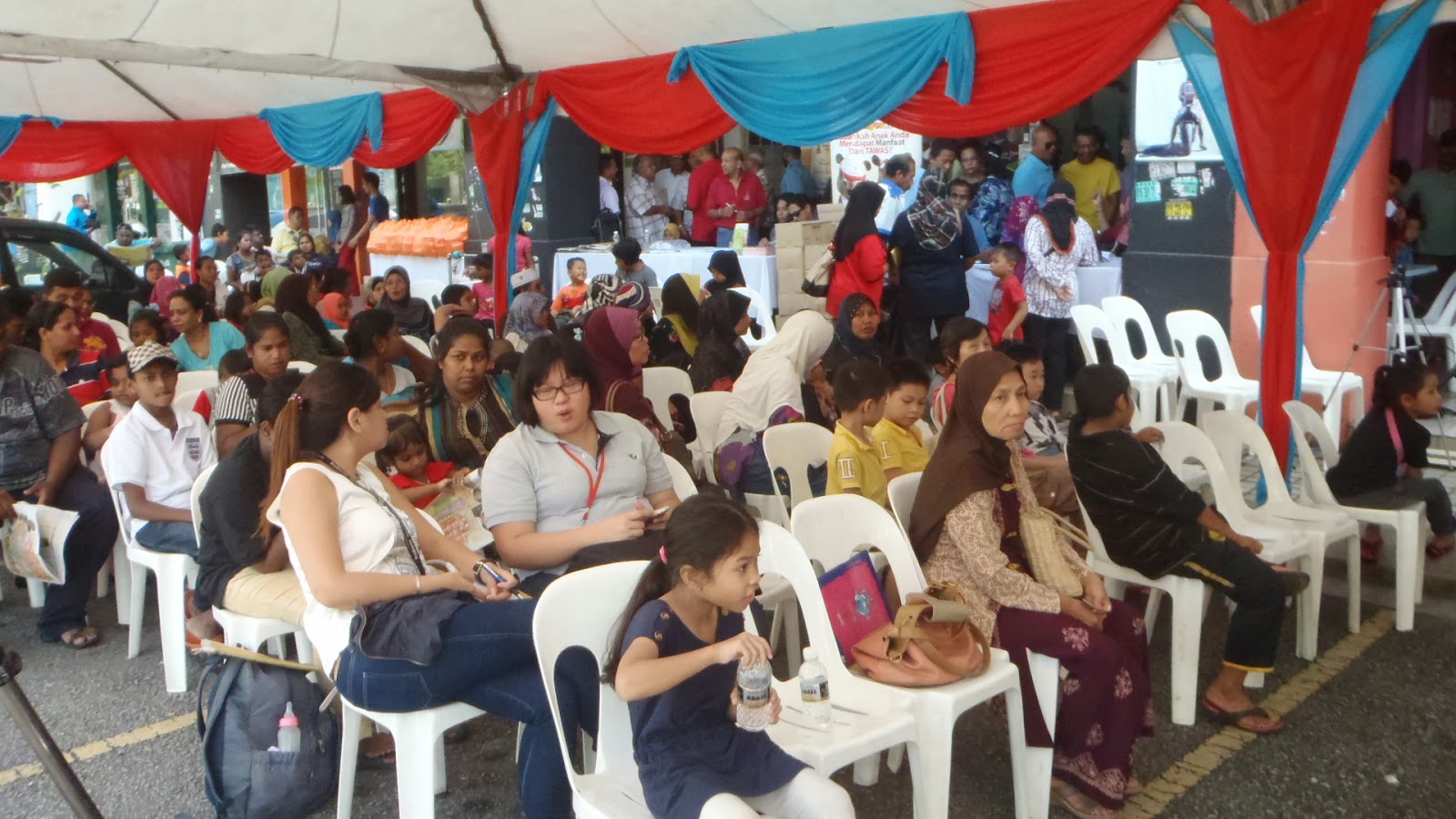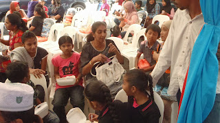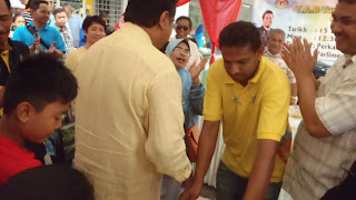 当他派完书包及礼券后,现场突然播出《快乐诞辰》马来版歌曲,接着,工作人员托出一盘生日蛋糕。