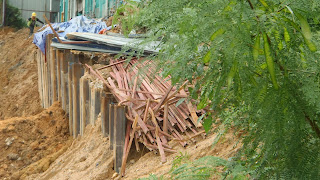 不料,下午3时许,突然接获居民的来电,被告知突然有大面积泥土崩倾,导致挡泥墙的鉄片倾斜。于是,服务团队又再紧急出发。