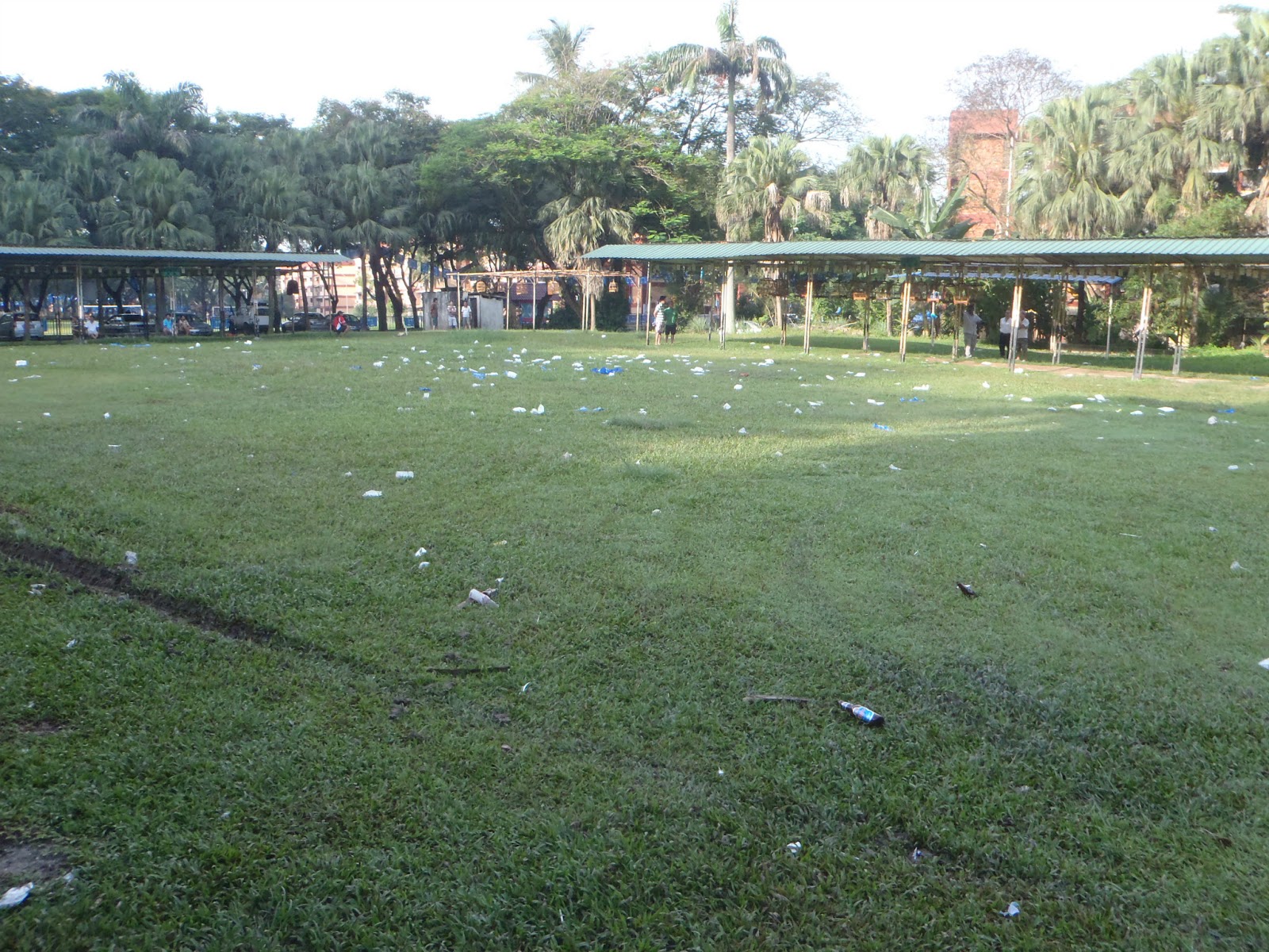雪隆禽鸣公会主席陈可光指出,国阵日前在该操场举办政治讲座及宴会,散会后留下满地垃圾。当中包括该党党旗及宣传品。